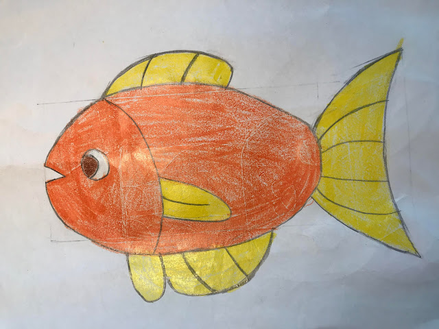 Steps 7: Once you have finished drawing the fish, you can add color using colored pencils or markers.